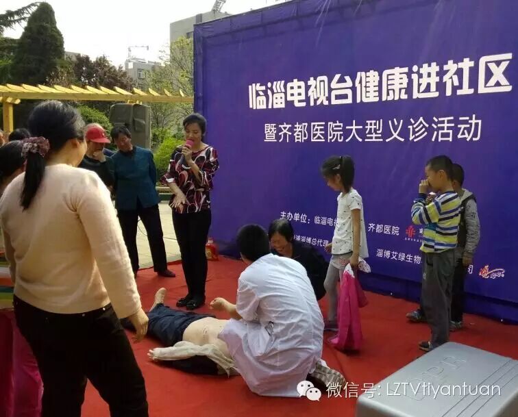 本次健康进社区活动由临淄电视台和齐都医院主办,淄博艾绿生物科技有限公司、淄博奔腾飞利浦总代理协办。旨在通过深入社区,把健康的理念和生活带到百姓生活中。在这次活动现场,齐都医院特意派出了自己的专家团队,为社区群众进行现场义诊。同时有针对性的为社区居民带来健康指导。在生活中,由于心脏病、煤气中毒等原因,病人会出现心脏骤停,意识不清等情况,这时候家庭急救首当其冲,对于挽救亲属生命至关重要,为此齐都医院急诊科大夫现场演示了心肺复苏术。