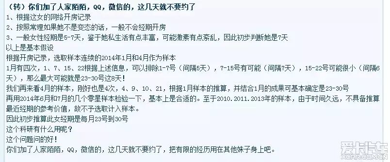 No Zuo No Die的成都女司机这次摊上大事了,86次开房记录被扒出来了,网上各路大仙通过开房记录,推算出了女司机的经期,大家慢慢看下面分析过程……笑死人不偿命