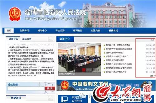 临淄区人民法院官网子栏目下内容更新截止2014年