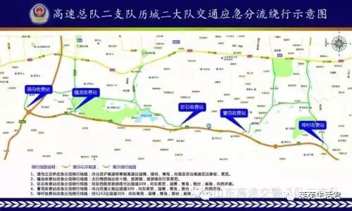 (1)去往淄博、潍坊、烟台、青岛的车辆,转入济南绕城高速(京沪高速)后南行,在济南东收费站下转入G309东行;去往烟台、青岛车辆还可沿济南绕城高速南行至港沟立交转青兰高速(济青南线)沿青岛方向行驶。