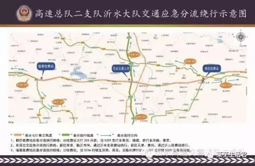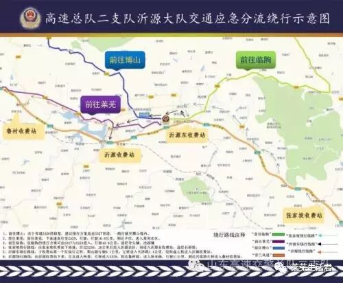 2、 从沂源收费站分流下来的车辆可以在第二个路口走西北方向沿S329去往莱芜;第一个路口右拐便是S329沿此路向东可达沂水马站镇、杨庄镇、诸城孟疃镇、诸城市区、黄岛市区。