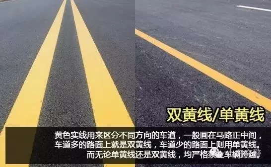 黄色实线用来区分不同方向的车道,一般画在马路正中间,有双黄线、单黄线两种。而无论单黄线还是双黄线,均禁止车辆跨越,压线行驶、超车或者掉头等都是不允许的。