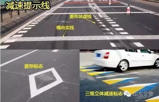 通常在路口或学校门口等地的路面上,出现的菱形标线是提醒车辆减速的意思。