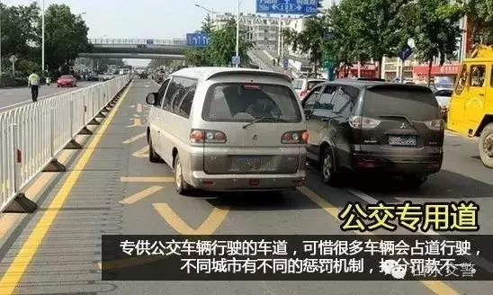 公交专用道通常会在地面用汉字标出,不按规定在公交车专用车道行驶,将受到处罚。