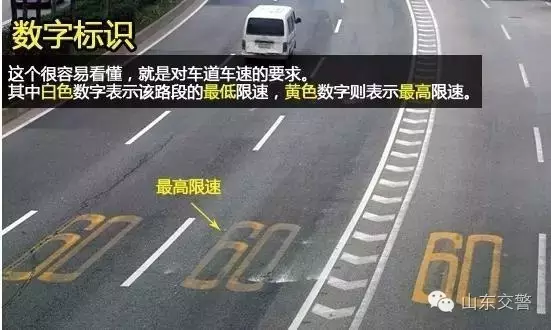这个很容易看懂,就是对车道车速的要求。其中白色数字表示该路段的最低限速,黄色数字则表示最高限速。
