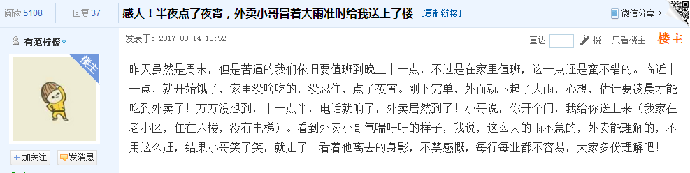 外卖小哥就爬了6楼,气喘吁吁的送到了…