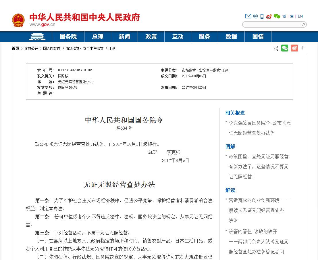不过你们的好日子马上来了!近日国务院发布《无证无照经营查处办法》