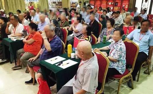 经历了收单、做客情、洗单三个环节,剩下的老人就成了会议营销的直接目标。