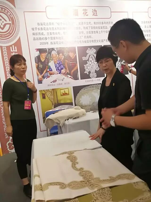 开展当天,省文化厅副厅长李国琳,市委常委、宣传部长毕荣青,省文化厅非遗处处长姜慧,市文广新局党委书记、局长周茂松,党委委员、副局长曹丕祯等领导来到临淄展区,听取了区文化出版局局长宋爱军对临淄非遗工作的介绍,并与参展项目代表亲切交流,对临淄区的非遗保护工作进行了高度评价。