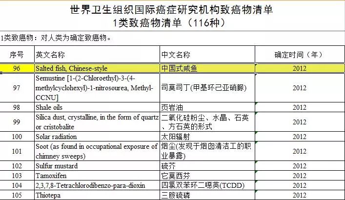 其实,中国式咸鱼并非首次上榜,早在2012年它就已经被确定为一类致癌物。