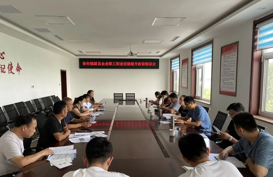 7月29日,临淄区公共就业和人才服务中心携手淄博市技师学院到朱台镇举办“厨具企业职工职业技能提升政策解读会”,与有关企业负责人座谈交流沟通。