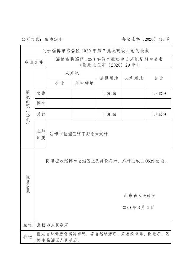 日前,山东省自然资源厅官网发布淄博市临淄区2020年第7批次建设用地涉及临淄1个村。