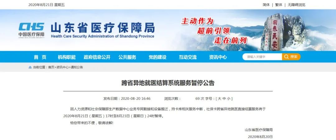 给您带来的不便,敬请谅解! 特此公告。 山东省医疗保障局 2020年8月20日