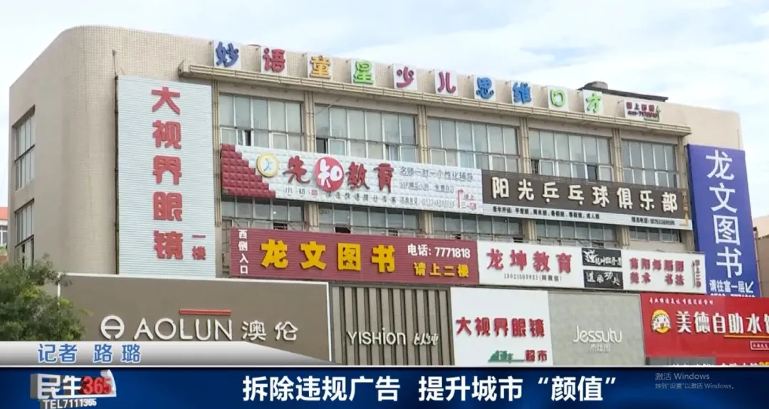 楼顶广告字不仅破坏城市景观,也成为悬在市民头顶上的重大安全隐患。区行政办公中心楼顶广告字的拆除,开启了全区广告牌匾治理工作序幕。