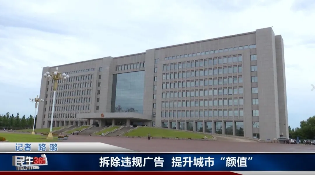 区综合行政执法大队副大队长边玉林告诉记者:“这个是按照市委市政府的工作部署和城市品质提升三年行动的要求,从广告安全和城市美观的角度,提出了对大型户外广告和楼顶广告的拆除工作部署, 咱区委区政府也比较重视,率先从区委区政府带头,将行政办公中心的楼顶大字已经拆除完毕。”