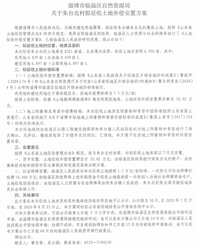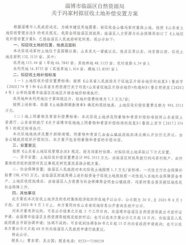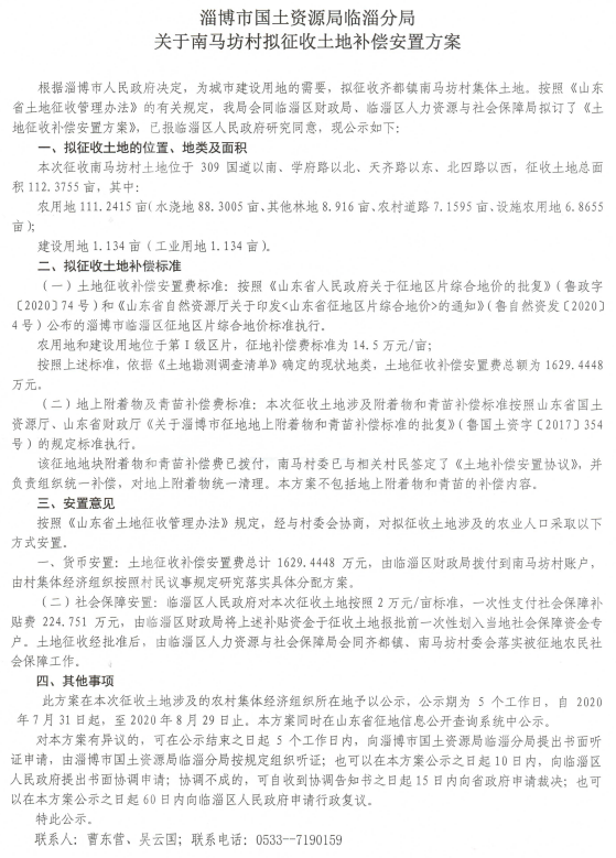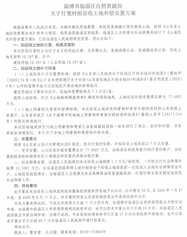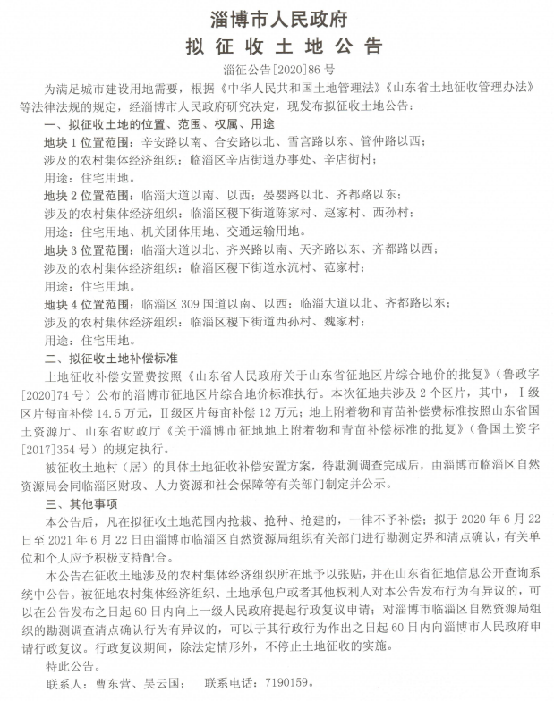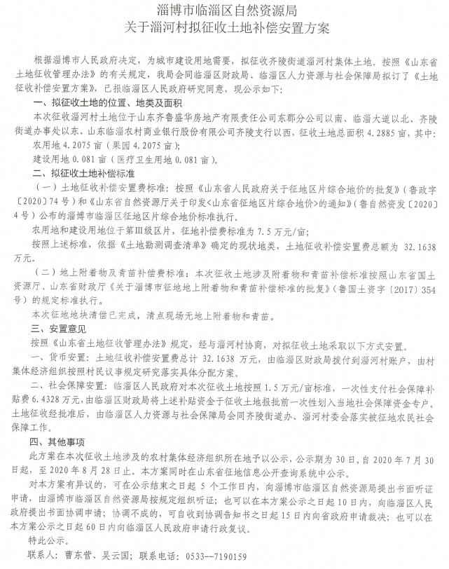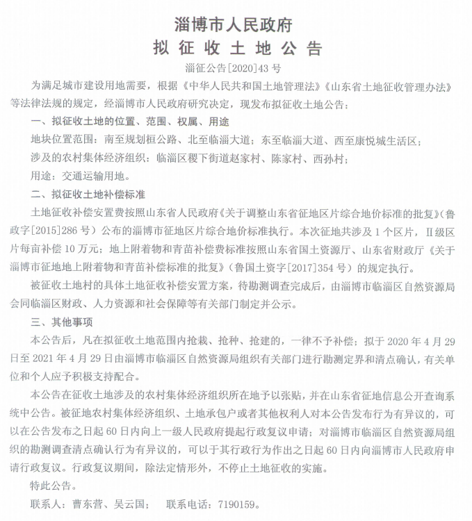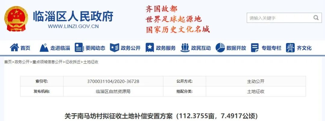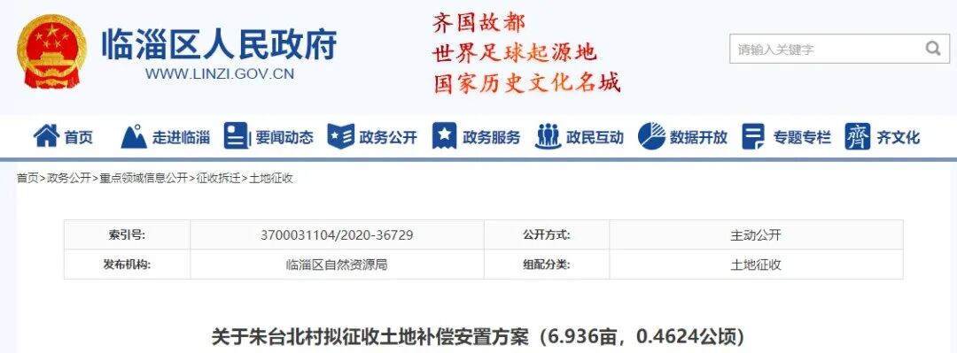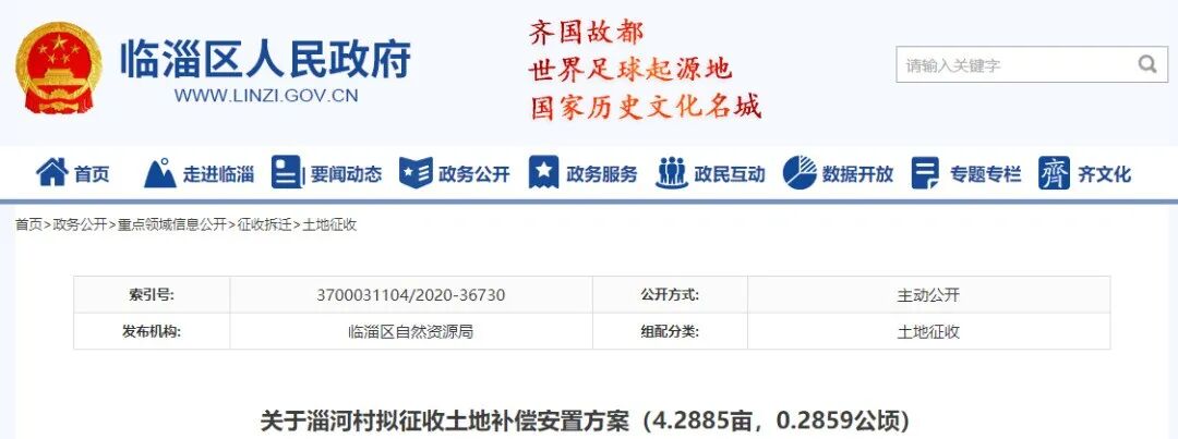近日,临淄区人民政府网站公布一批拟征收土地公告,快看有没有你们家↓最高1629万!临淄8个村征地补偿安置费公布!还有十几个村要征地!