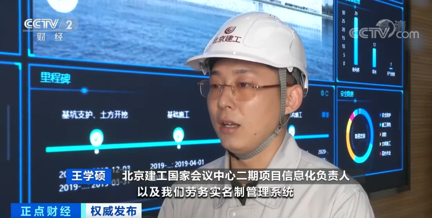北京建工国家会议中心二期项目信息化负责人 王学硕:智能塔吊防碰撞,以及劳务实名制管理系统,都已经应用到本项目当中,保证项目的安全。