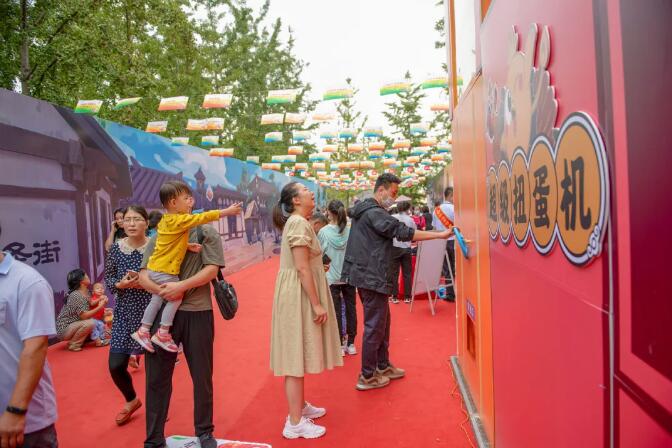 在往内走,是超级扭蛋机,有趣的游戏形式与蹴鞠精灵的形象吸引无数游客前来打卡,一千个人,可能有一千种扭蛋结果。