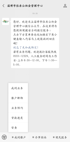 1.关注“淄博市住房公积金管理中心”微信公众号,通过人脸认证或者密码登录的方式绑定住房公积金账户。