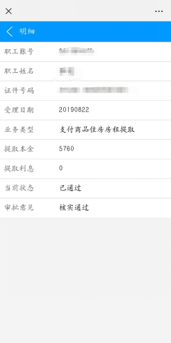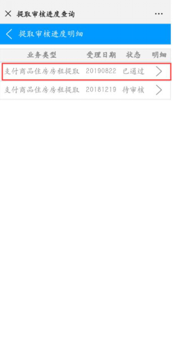 4.查看业务办理进度情况。依次选择我的账户-我的业务-信息查询-提取审核进度,点击所办理的业务,即可查看审核进度明细情况。