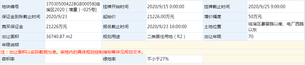 宗地编号:370305004228GB00058[临淄区2020(增量)-025号]