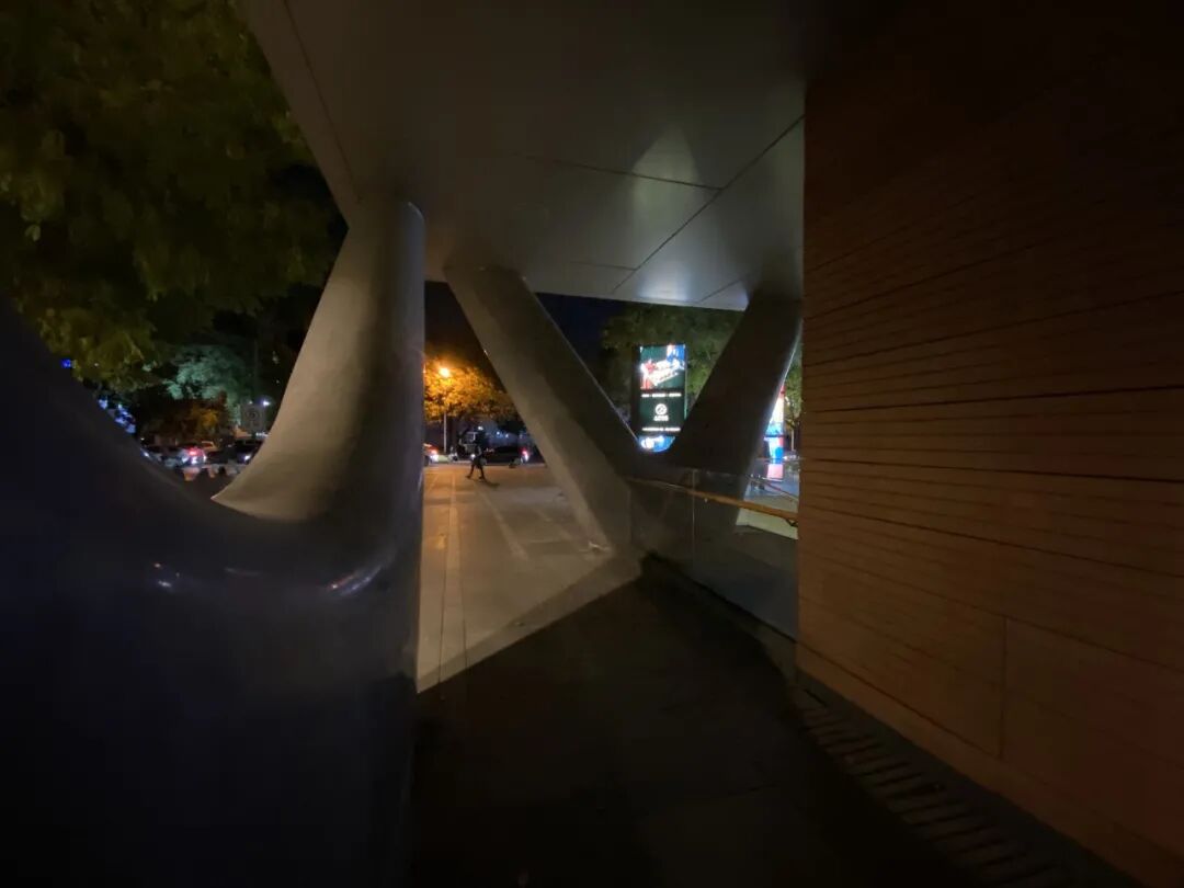 在12和12 Pro上,夜间模式也支持了超广角镜头,为了对比明显,我们选择了一个比较极端的场景。可以看到 ,夜间模式下,无论是在画面的亮度还是细节方面的表现,12和12 Pro的提升都是非常明显的,这也提升了超广角镜头在暗光环境下的可用性。