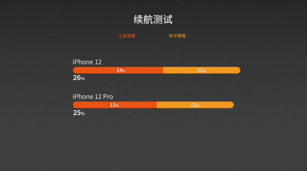 我们也记录了一下耗电情况,iPhone 12游戏过程中共计掉电26%,iPhone 12 Pro共计掉电25%。