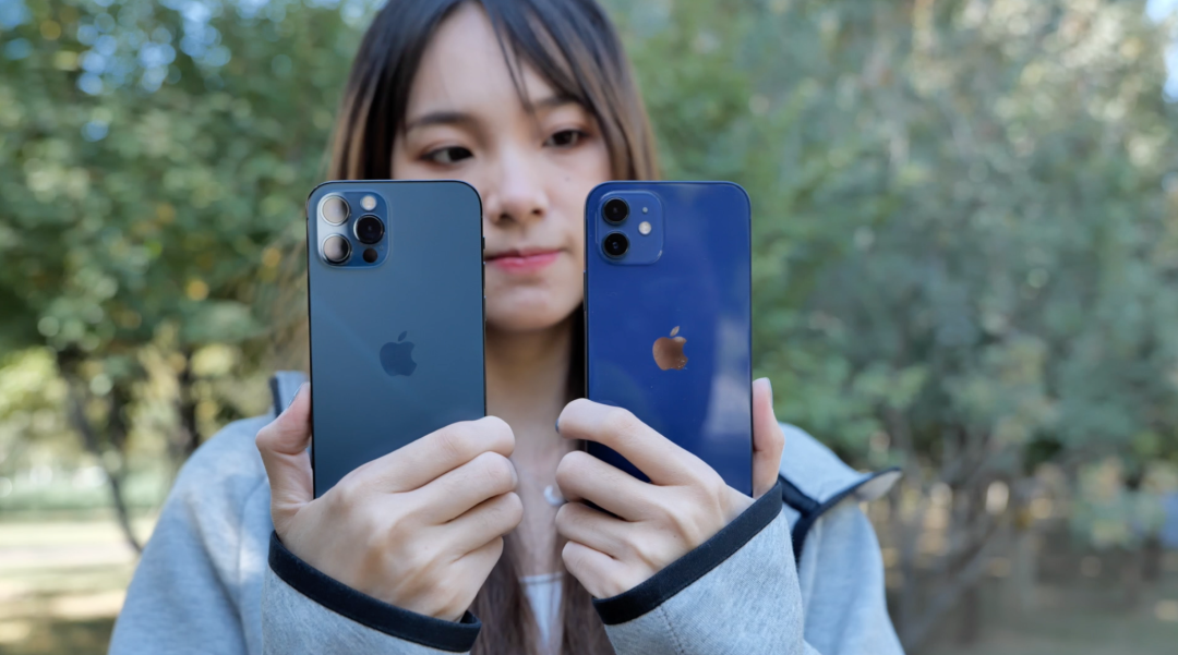 我们将12和12 Pro放在一起发现,二者屏幕黑边宽度一样。原来纠结iPhone黑边问题的朋友终于可以放心购买了。