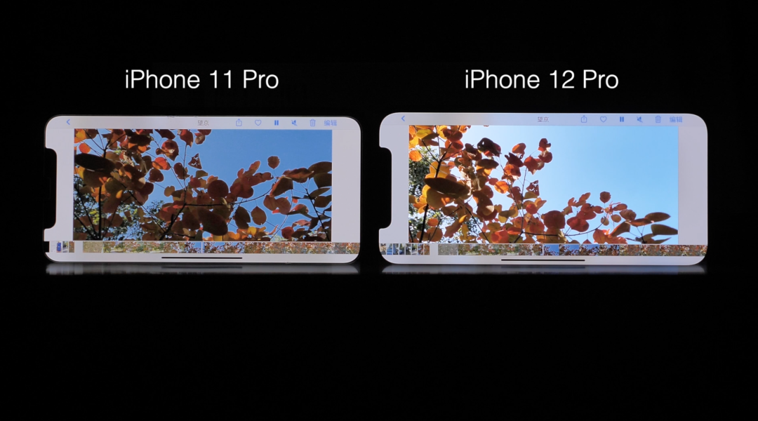 我们也细致对比了上代产品,iPhone 12相比iPhone 11,那显示效果提升是非常大的,12 Pro和11 Pro则是两款屏幕的硬参数和实际观感也都是相同的。