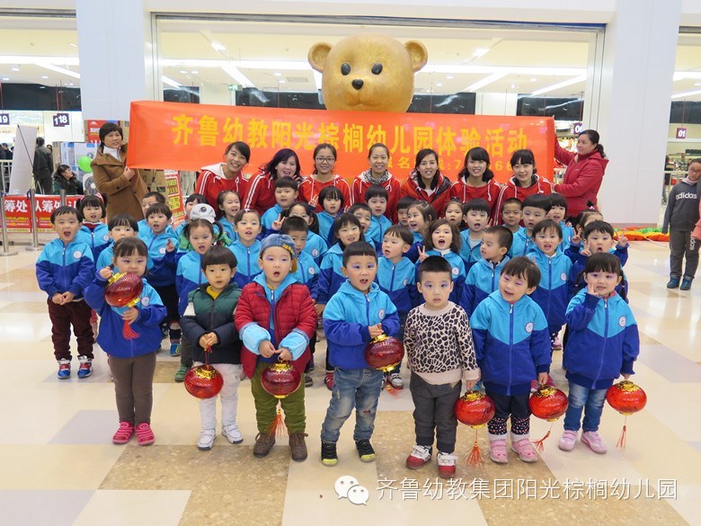 阳光棕榈幼儿园是淄博齐鲁幼教集团精心打造的一所高品位、精细化、最高端的幼儿园。2014年9月盛大开园,以体验式教育为主,让教育像呼吸一样自然。为了给孩子们最自然的教育、最快乐的体验、最有价值的经验,我们一起携手和孩子们走向社会、走进时代广场去体验和感受我国传统的元宵佳节的欢乐气氛!