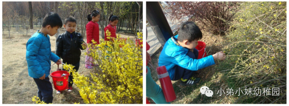 “瞧!这不是迎春花吗?”可是老师说这是连翘。这才是迎春花呢,你们能分得出来吗?连翘花有四个花瓣,迎春花有六个花瓣呢!