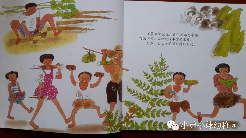 《我砍倒了一颗山樱花》---“不管到哪里玩,我们都不忘带些野菜回家。山野就像丰富的宝库。当然,自己挖的菜也特别好吃。”