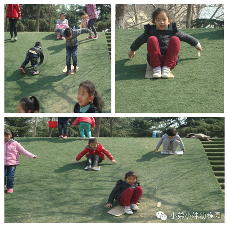 真佩服孩子们的想象力与创造力!在来的路上还担心,没有滑板怎样让孩子们来感受书中作者小时候从草坡上玩滑板的感觉。没想到孩子们很快就地取材,用废旧纸壳、废旧报纸做成了一个个独特的小滑板。瞧!用自制的小滑板一样能滑出童年的快乐!体会那久违的童年滋味......