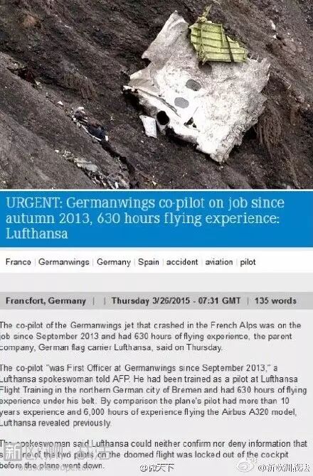 2. 德国之翼:从调查方得知副驾驶可能蓄意坠毁飞机;