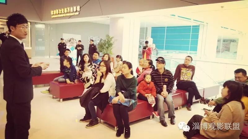 工作人员为临淄分站的影迷介绍临淄万达影城