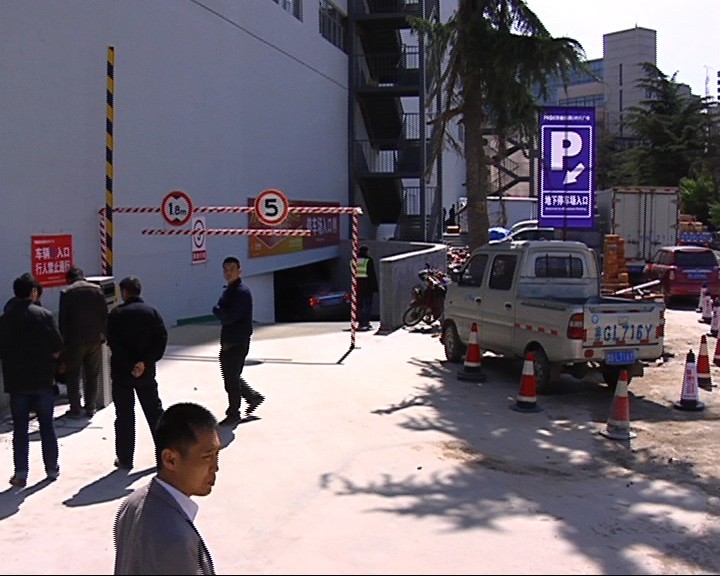 在茂业时代广场楼体的北侧,也就是化工城东入口,路口明显能看到一处红色的停车场指引牌,顺着指示牌往前还有方向指引牌,现场也有工作人员指挥方向。