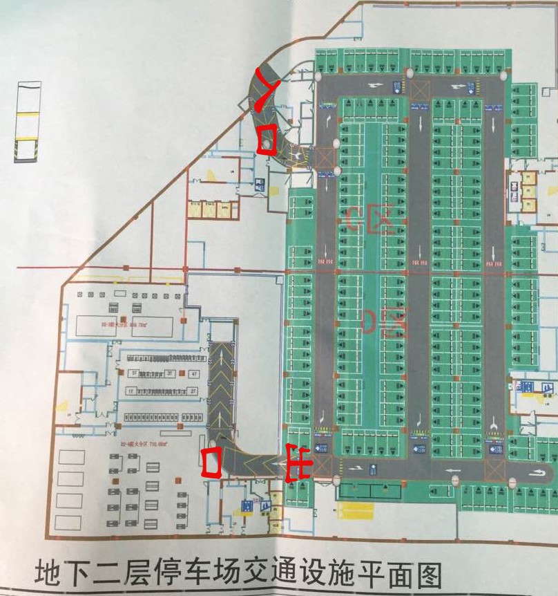 停下车后不要急着走,一定注意看一下自己的停车区域,停车场里共分A,B,C,D四个区域, A区和B区在地下一层,C区和D区在地下二层。等从商场血拼完,按着自己的停车区域或看看我们的平面示意图就能找到你的爱车了。