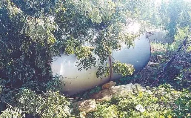 储水罐已被拖至养鸡场外的草丛里。 在养鸡场外的草丛里,有一个银灰色的不锈钢罐,据观察罐体高至少2米,其直径约1.5米。正在干活的工人称,这个储水罐一次可储水三至四吨。