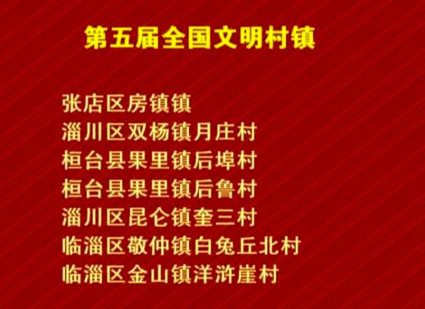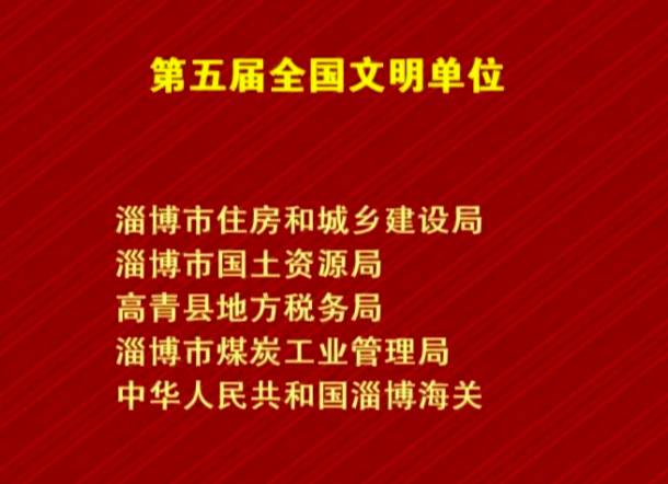会上,张店区房镇镇、淄川区双杨镇月庄村、桓台县果里镇后埠村、桓台县果里镇后鲁村、淄川区昆仑镇奎三村、临淄区敬仲镇白兔丘北村、临淄区金山镇洋浒崖村被表彰为第五届全国文明村镇;淄博市住房和城乡建设局、淄博市国土资源局、高青县地方税务局、淄博市煤炭工业管理局、中华人民共和国淄博海关被表彰为第五届全国文明单位;高新区实验中学荣获首届全国文明校园荣誉称号。