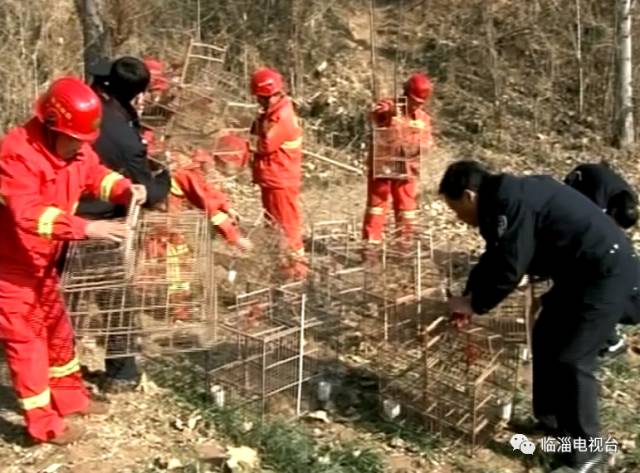 进入冬季,不少群众打热线反映,在马莲台、太公湖区域存在违法捕鸟行为。执法人员一路巡查,在齐陵街道龙池村某处树林内,发现了挂在树上的捕鸟笼,数量惊人。
