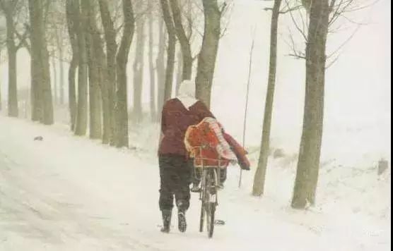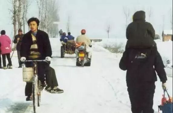 雪再大,路再滑,亲戚该走还要走,能骑车了骑车,不能骑车了步行,不知道你注意了没有,大伯身后还蹲着一个小孩子。这朴实的乐观让人感动!如今人情味淡了所以年味淡了!