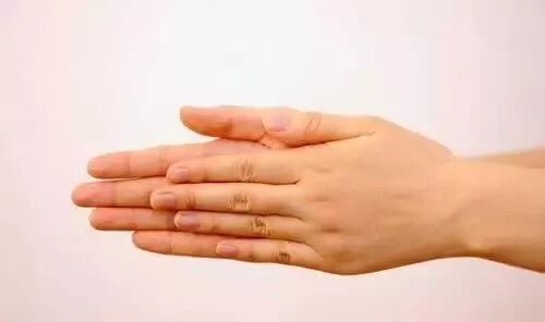 方法:两手伸直,手心相对,上下搓,前后揉,然后两手做“负阴抱阳”的动作——右手包着左手。