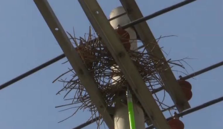 国家电网临淄分公司技术员王炳成介绍:“下雨的时候,(鸟巢)潮湿度增大了,一旦搭在开关的两相上,它(电线)就能两相短路,造成掉闸。现在的鸟类,它建筑方面也研究得很透彻了。有时候它不光是纯粹的树枝做巢,甚至还含来建筑工地上一些废弃铁丝之类的。”