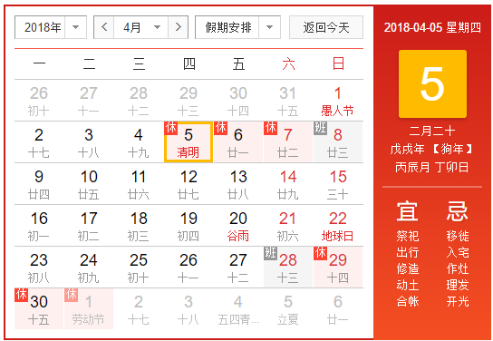 4月5日(星期四)至7日(星期六)放假调休,共3天。4月8日(星期日)上班。