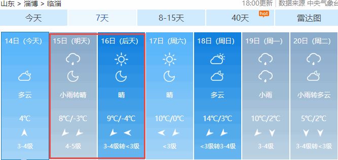 3临淄区气象局3月14日中午发布寒潮黄色预警,15日早晨至16日我区出现小雨和剧烈大风降温天气。