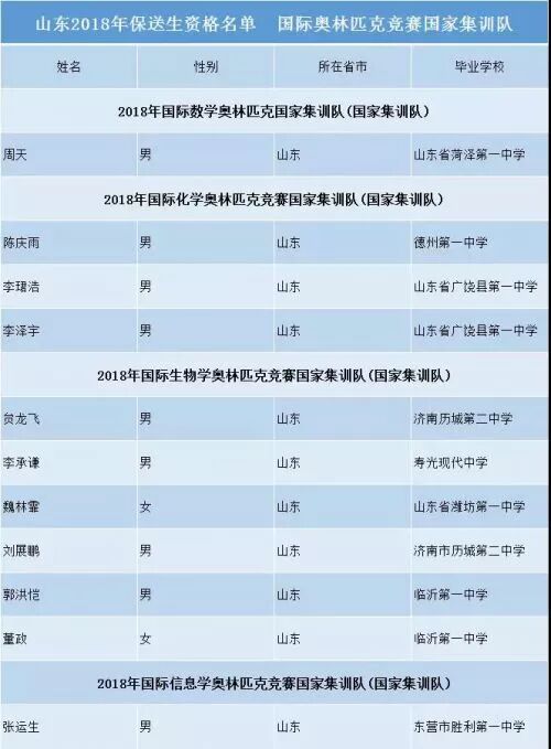 近日教育部阳光高考信息公开平台公布了2018年保送生资格名单,山东共有310名学生上榜,包括省级优秀学生、外国语学校推荐保送生和国际五项学科奥林匹克竞赛国家集训队员三大类,山东第二类保送生资格人数最多。