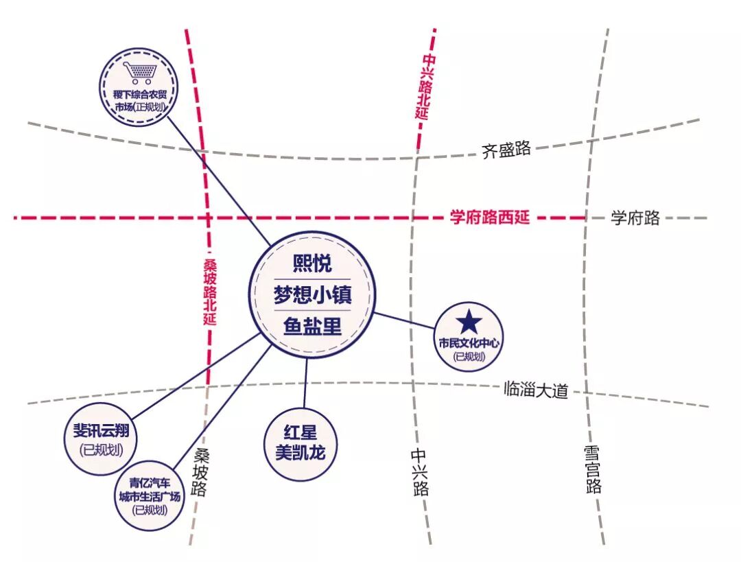 人口聚集地,就是城市最繁华的区域。通过区位图不难发现,五大重点项目全部坐落于梦想小镇和熙悦2.5公里范围内,这6个市重点项目建设好后,本身就会成为临淄中心,并且会成为会为西城提供大量就业机会,吸引更多人才入驻西城。