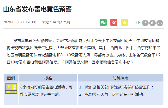 山东省气象台于5月16日10时00分发布