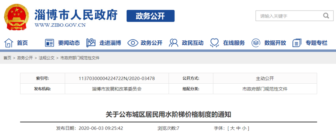 发布《关于公布城区居民用水阶梯价格制度的通知》