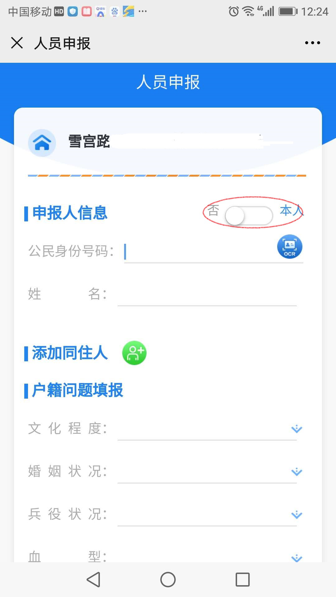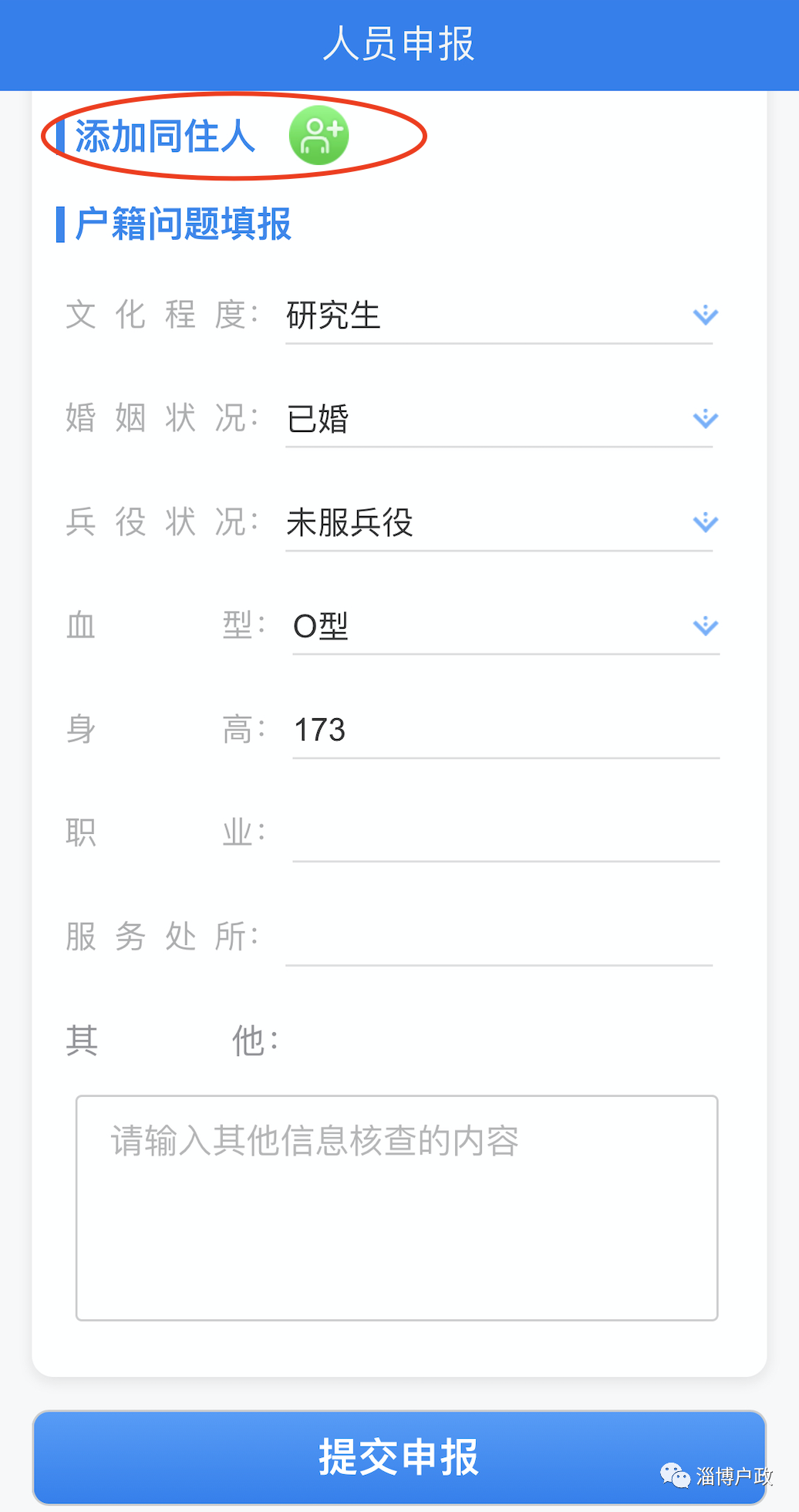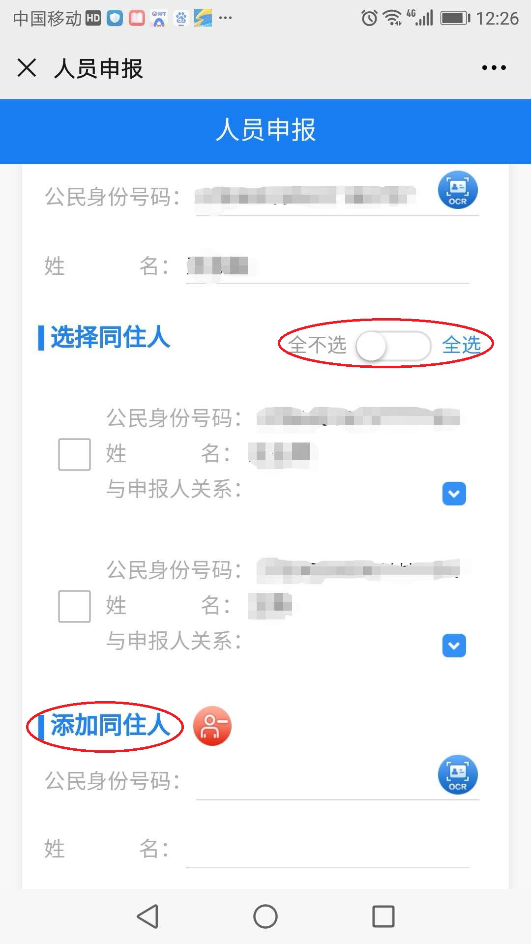 (2)其他同住人员可以选择“添加同住人”进行信息填报。